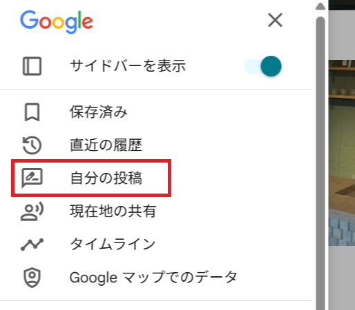 メニュー アイコン(≡)から「自分の投稿」をクリックします。