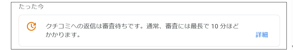 当社環境でもレビュー返信後に審査中表示を確認しております。